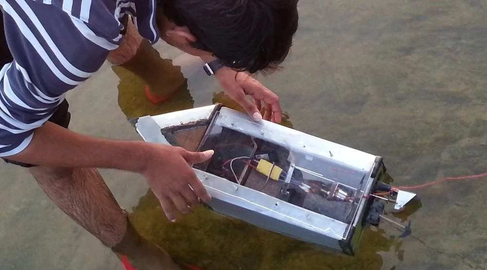 Used a high speed brush-less motor to propel the boat and a servo to control the rudder. A 6 Channel Remote Control 2.4 GHz FS-CT6B is used to control the boat and a on-board battery backup is provided by a 2800 mah lithium polymer battery.